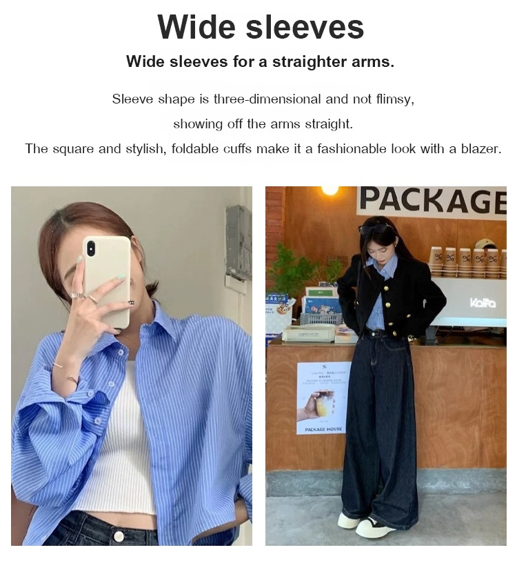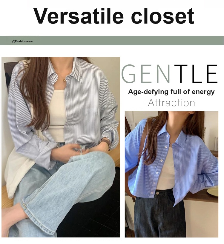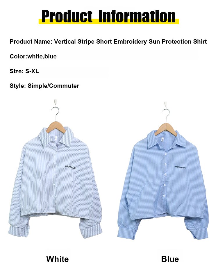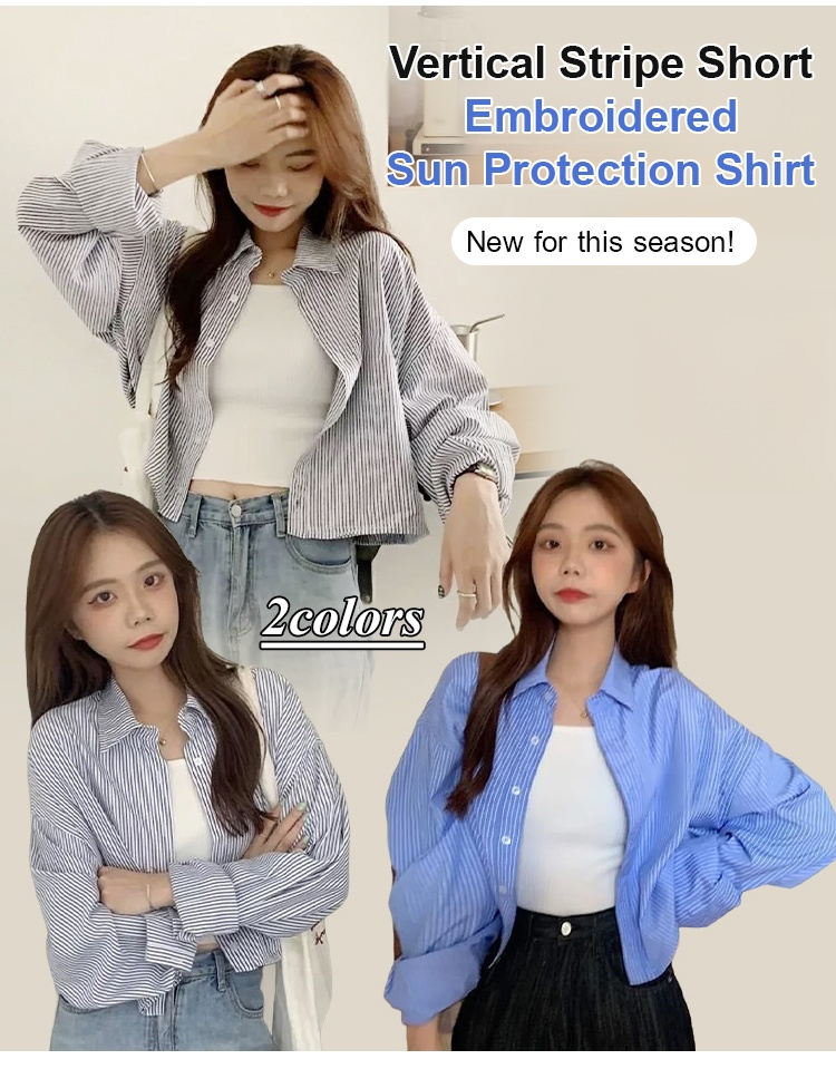 Vertical striped cropped embroidered sun protection shirt
